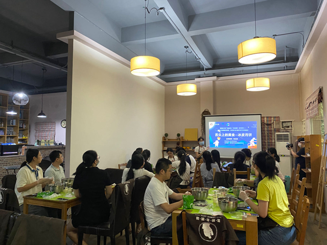 韋玉秀介紹了冰皮月餅的由來、制作方式、原料和工具,并詳細(xì)講解制作步驟和操作方法。隨后,參與人員動(dòng)手實(shí)踐,稱重、攪拌、倒水、搓揉、壓模,做出的月餅小巧玲瓏、柔韌彈牙、香甜可口,現(xiàn)場還提供了封裝服務(wù),美味的月餅裝入精美的包裝盒,絲絲入扣,愛意滿滿。