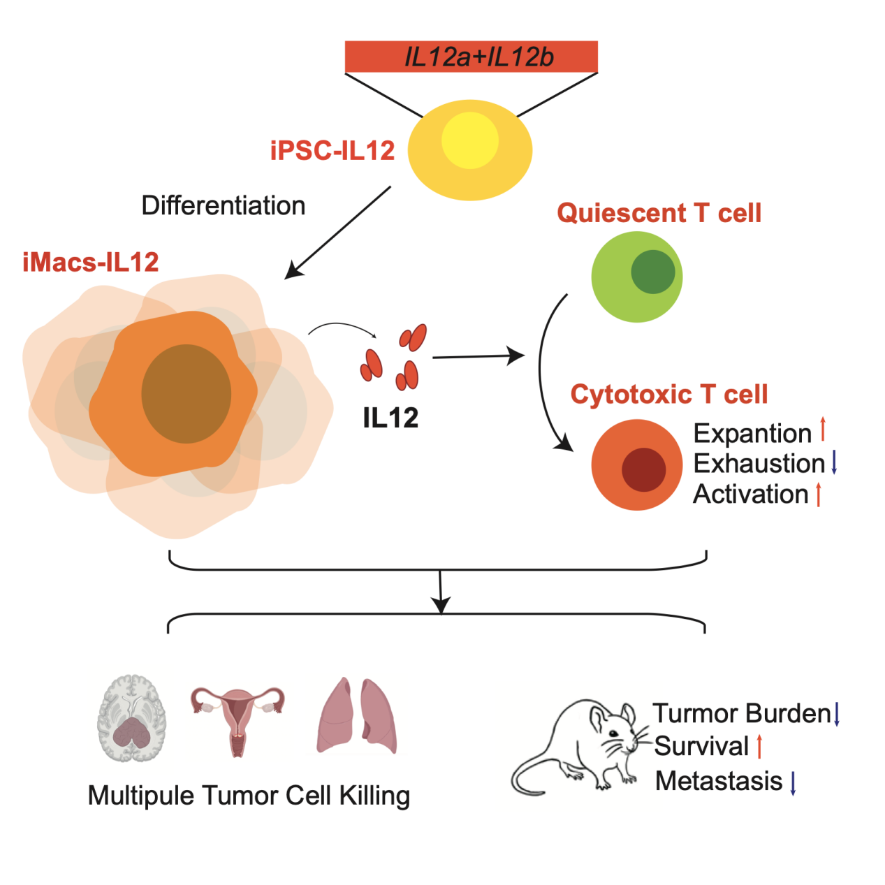 人多能干細(xì)胞來源的分泌IL12巨噬細(xì)胞抗腫瘤示意圖