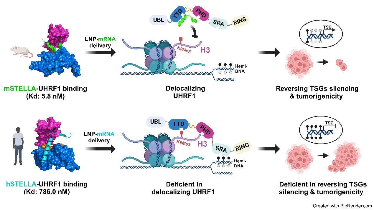 圖?揭示mSTELLA和hSTELLA對UHRF1功能抑制差異的分子基礎(chǔ),發(fā)展UHRF1靶向干預(yù)和DNA去甲基化新策略