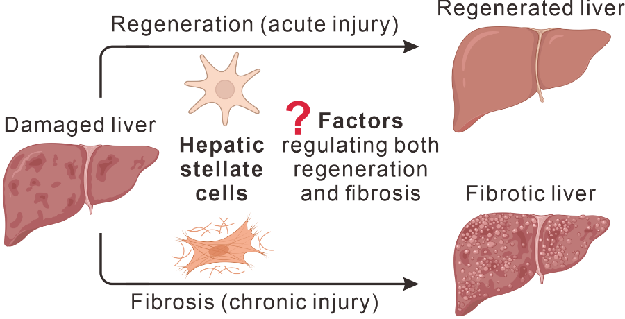 圖1?肝星狀細(xì)胞(hepatic stellate cells)在肝損傷后的再生和纖維化中發(fā)揮重要作用,但在肝星狀細(xì)胞中同時(shí)調(diào)控兩個(gè)過程的靶基因并不清楚。