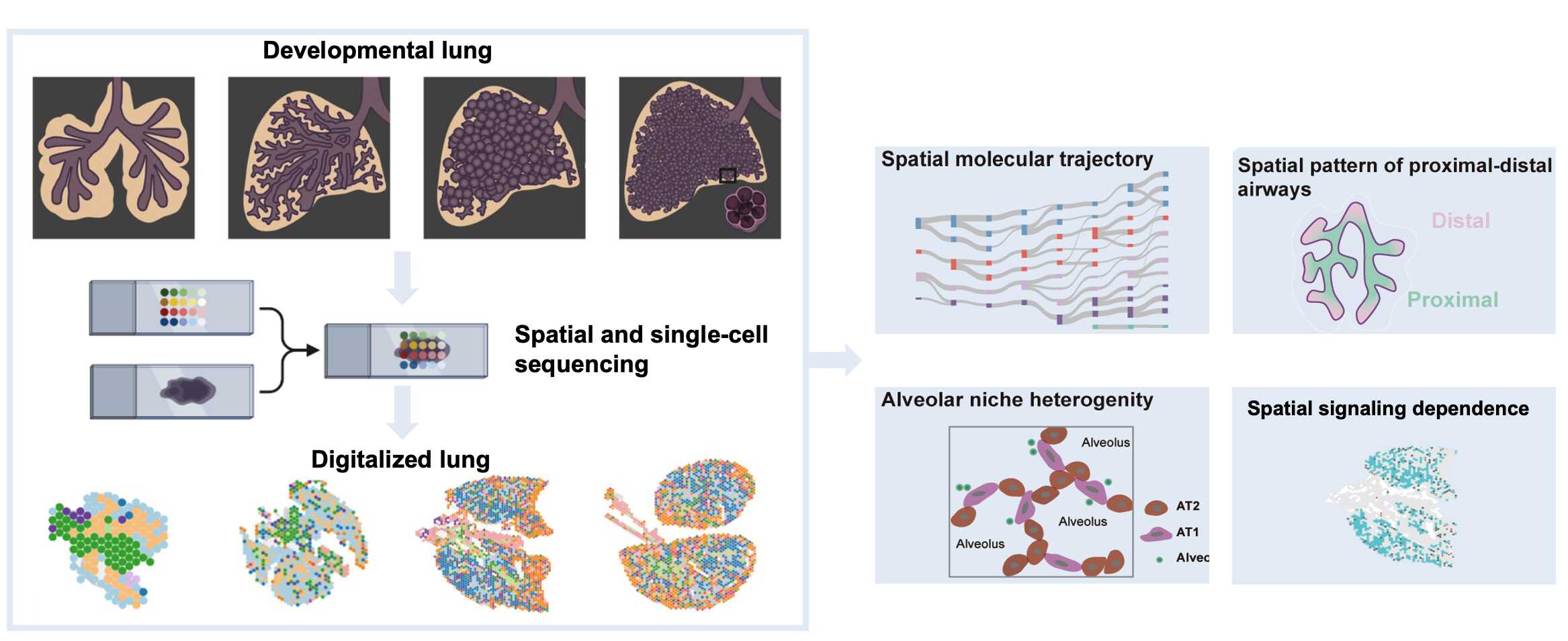 分子軌跡、近端和遠端氣道發(fā)育的空間模式、肺泡發(fā)育的生態(tài)位異質(zhì)性和肺發(fā)育中的信號通路調(diào)控。