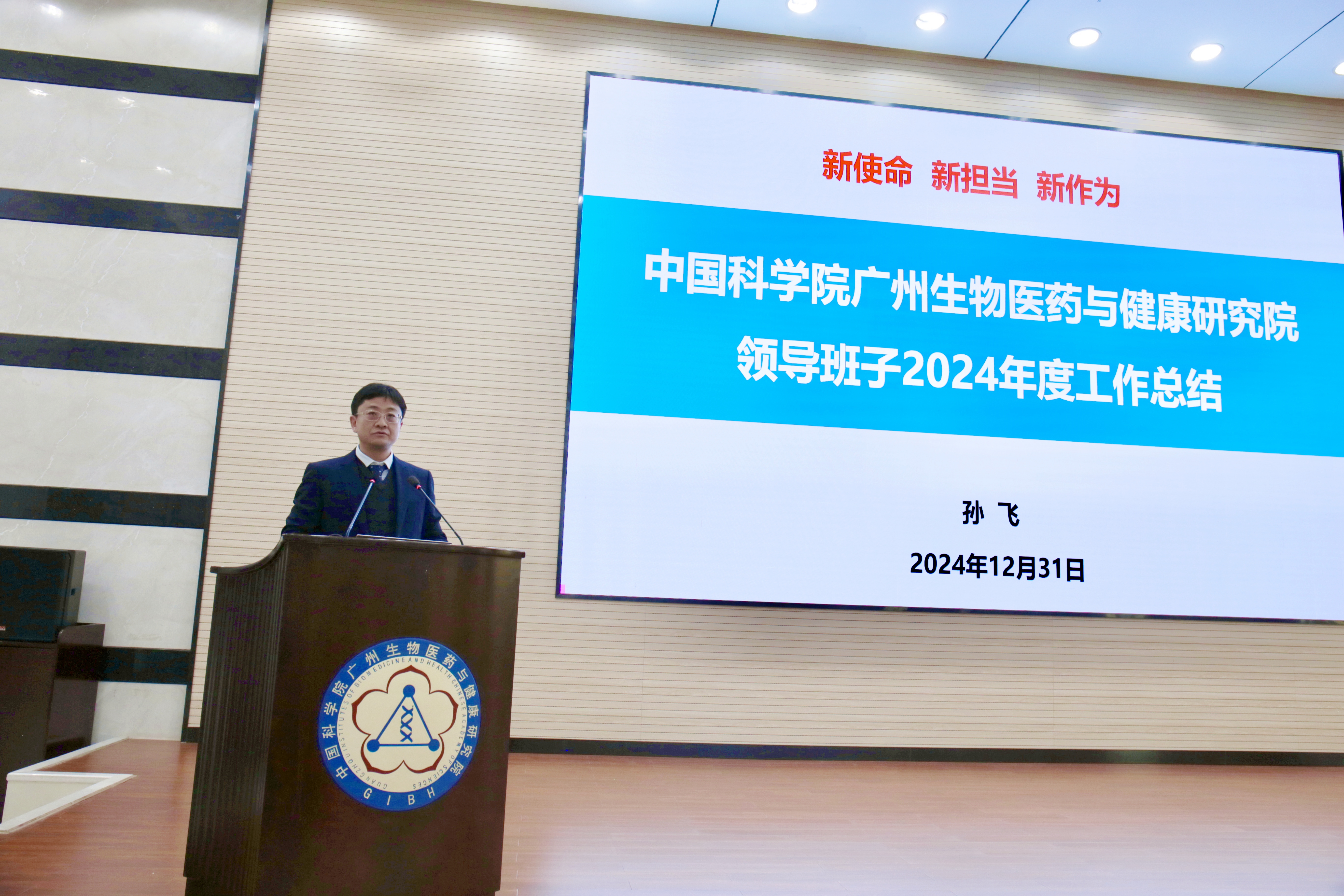 陳廣浩首先介紹了考核評議的要求和相關(guān)注意事項(xiàng)。隨后,孫飛副院長(主持工作)代表廣州健康院領(lǐng)導(dǎo)班子作年度工作總結(jié)報(bào)告。孫飛從“強(qiáng)化全面從嚴(yán)治黨,以高質(zhì)量黨建引領(lǐng)高水平科技創(chuàng)新”“進(jìn)一步全面深化改革創(chuàng)新,提升研究院治理能力”“爭取重大科技任務(wù),保障創(chuàng)新成果產(chǎn)出”“匯聚優(yōu)勢力量,加快建設(shè)細(xì)胞譜系設(shè)施”“促進(jìn)科教融合,切實(shí)提升研究生培養(yǎng)質(zhì)量”“務(wù)實(shí)開展交流合作,有效增強(qiáng)研究院國際影響力”等6個(gè)方面全面回顧了研究院2024年取得的成績,分析了存在的問題與不足,并對研究院2025年度重點(diǎn)工作進(jìn)行了部署。