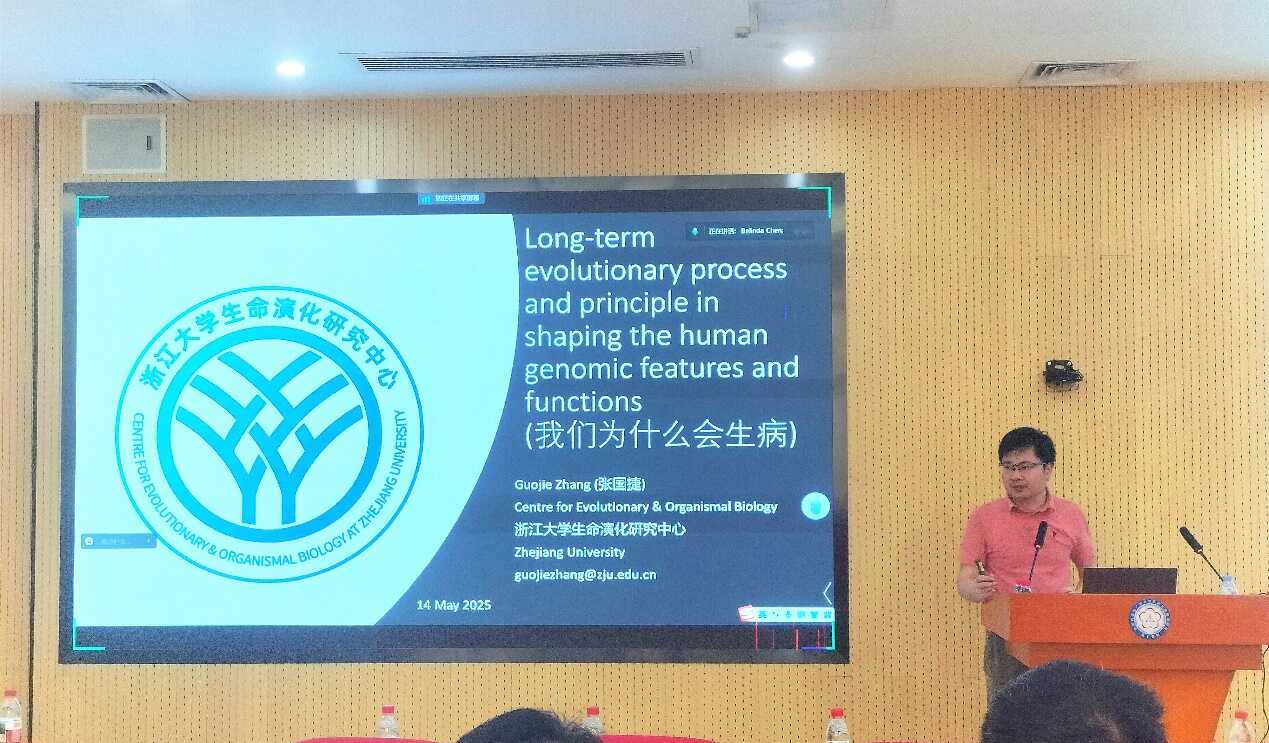 報告中,張國捷教授以"我們?yōu)槭裁磿?這一核心問題為切入點,從演化與基因組的宏觀視角出發(fā),揭示了人類疾病的演化根源。研究從基因組層面剖析了人類疾病的內(nèi)在機制,系統(tǒng)闡釋了基因組變異、結(jié)構(gòu)特征及其調(diào)控元件演化對個體疾病易感性的關(guān)鍵影響,并展示了如何通過跨物種比較基因組學方法精準識別疾病相關(guān)的核心基因與調(diào)控序列。
