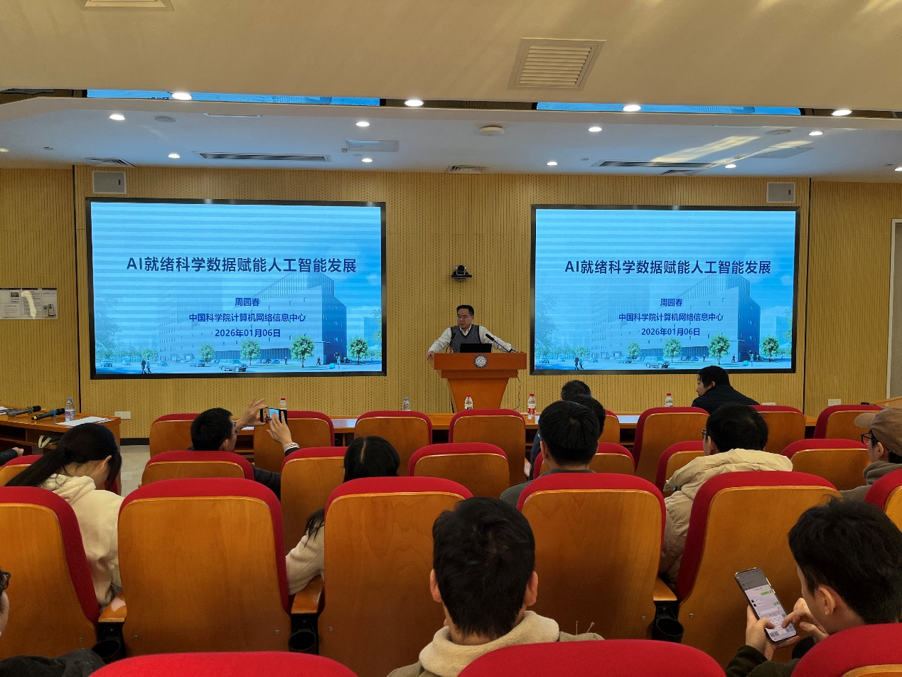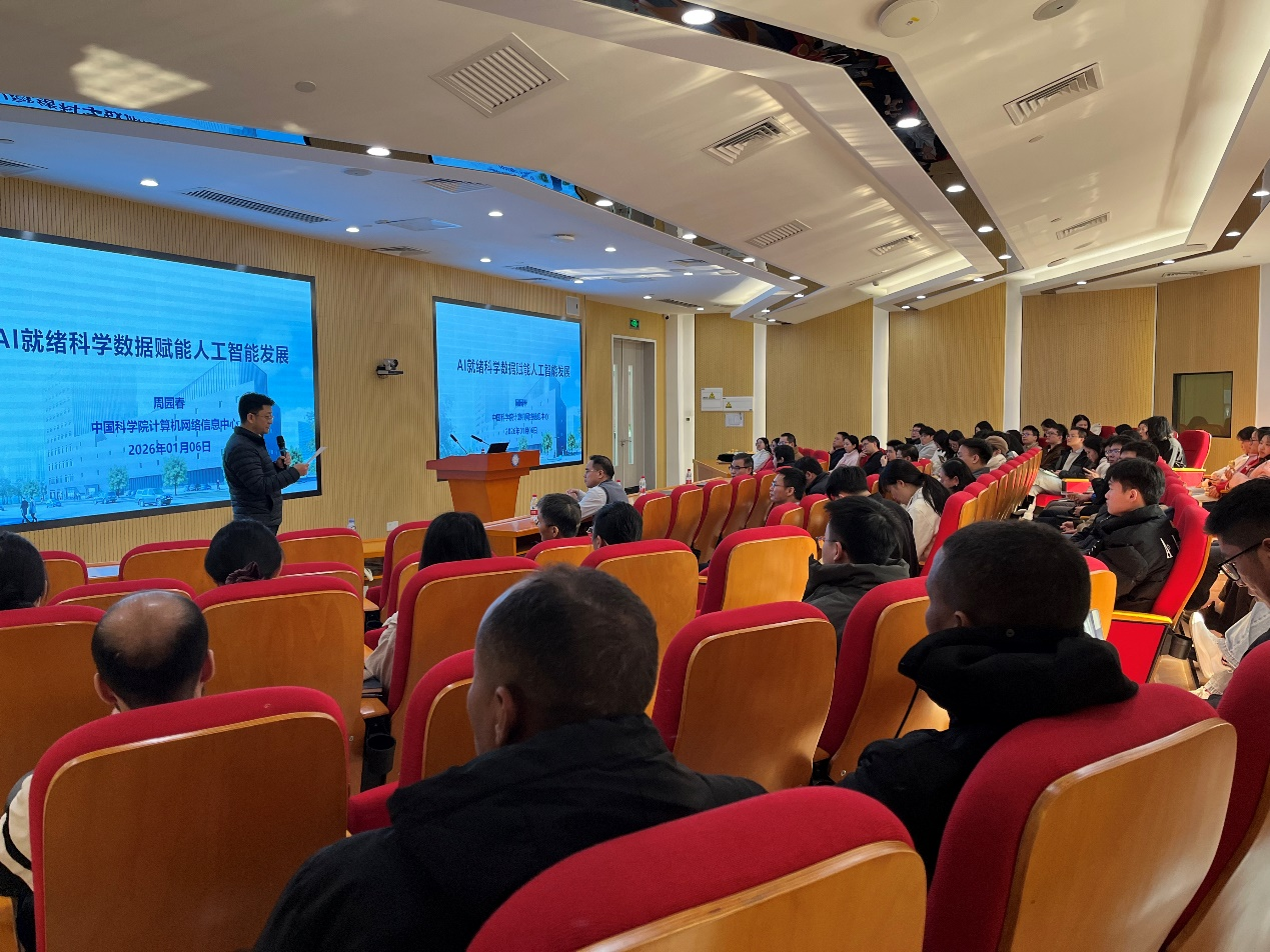 2026年1月6日,中國科學院計算機網(wǎng)絡(luò)信息中心研究員周園春到訪中國科學院廣州生物醫(yī)藥與健康研究院(以下稱“廣州健康院”),并作題為《AI就緒科學數(shù)據(jù)賦能人工智能發(fā)展》的學術(shù)報告。本次報告由廣州健康院副院長(主持工作)孫飛主持,吸引了院內(nèi)近百名科研人員與學生參會。