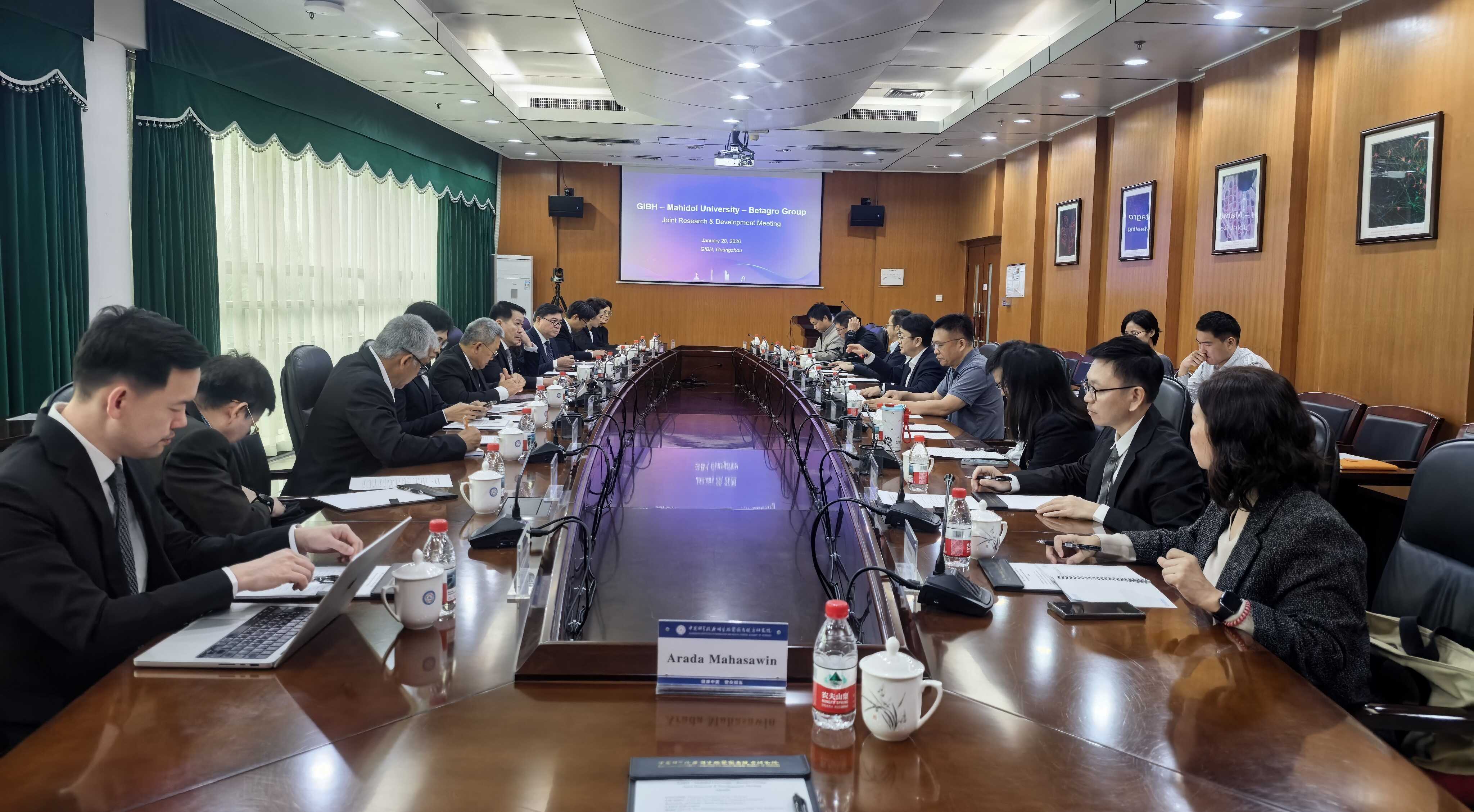 1月20日,泰國(guó)瑪希隆大學(xué)校長(zhǎng)Piyamitr Sritara教授與 Betagro集團(tuán)首席執(zhí)行官Vasit Taepaisitphongse 率代表團(tuán)訪問中國(guó)科學(xué)院廣州生物醫(yī)藥與健康研究院(以下簡(jiǎn)稱 “廣州健康院”),雙方圍繞異種移植、細(xì)胞治療等前沿領(lǐng)域的科研合作與人才聯(lián)合培養(yǎng)深入洽談,達(dá)成多項(xiàng)共識(shí)。
