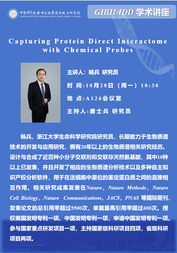2024年10月28日GIBH-IDD 學(xué)術(shù)講座:Capturing Protein Direct Interactome with Chemical Probes