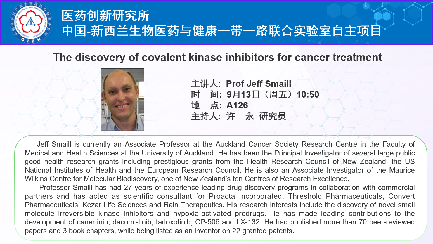 2024年9月13日學術(shù)講座:The discovery of covalent kinase inhibitors for cancer treatment