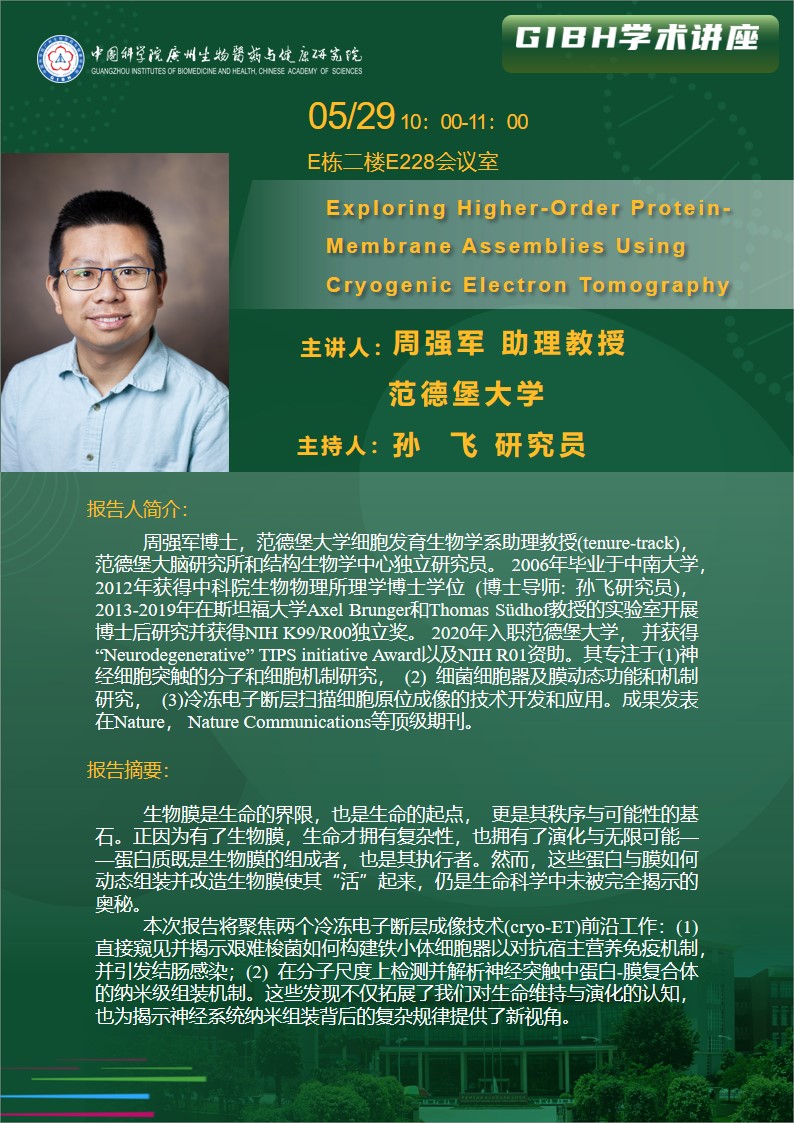 2025年5月29日學(xué)術(shù)講座:Exploring Higher-Order Protein-Membrane Assemblies Using Cryogenic Electron Tomography