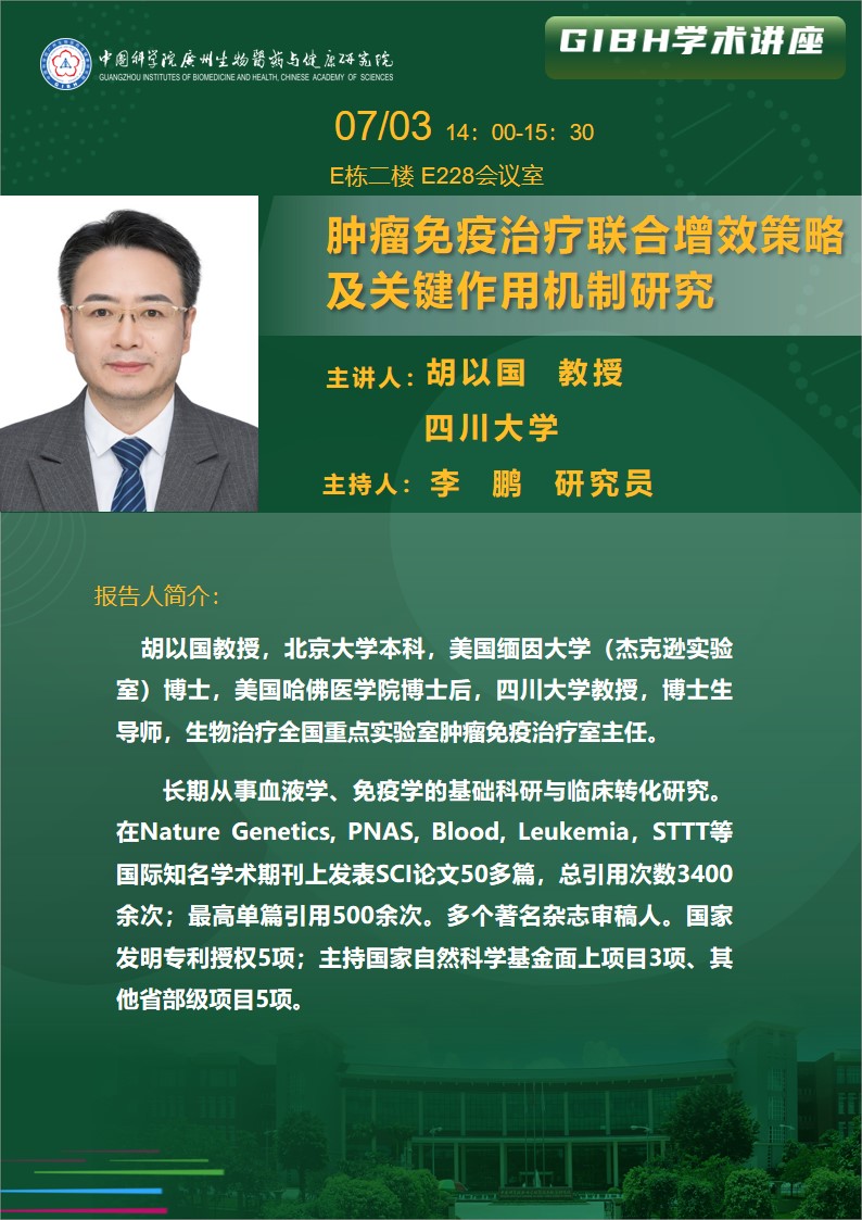 2025年7月3日學(xué)術(shù)講座: 腫瘤免疫治療聯(lián)合增效策略及關(guān)鍵作用機(jī)制研究
