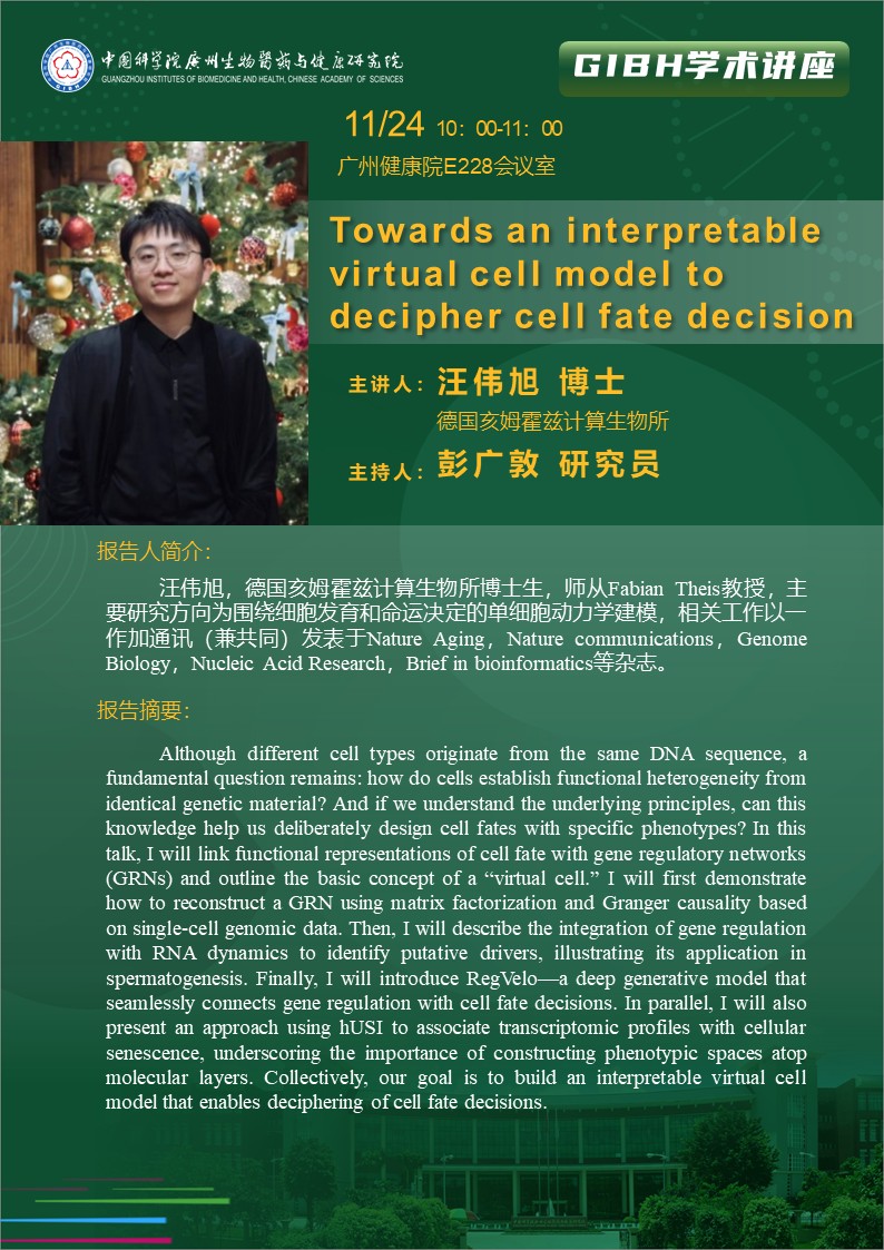 2025年11月24日學(xué)術(shù)講座:Towards an interpretable virtual cell model to decipher cell fate decision